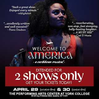 The new Caribbean musical Welcome to America is a TRIUMPH, and is held over in its limited run for TWO SHOWS ONLY this weekend in Jamaica Queens!